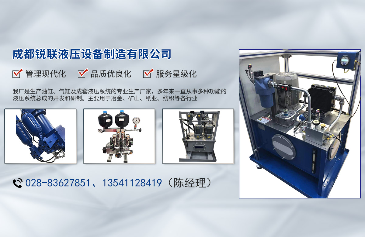 成都锐联液压设备制造有限公司成立于2011年7月,厂址位于成都市青白江工业园区大成工业园,目前员工人数榆50人,占地2000㎡,是一家集产品开发、研制、设计、制造于一体的专业化液压装置生产厂家。本公司依托先进、可靠的技术,以传统液压设备为基础,致力于新兴液压设备的研发、设计与制造,积极开创具有大正技术特色的优秀产品。